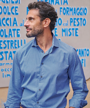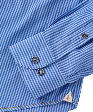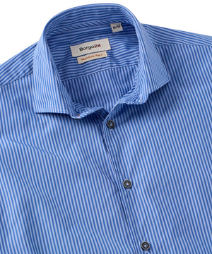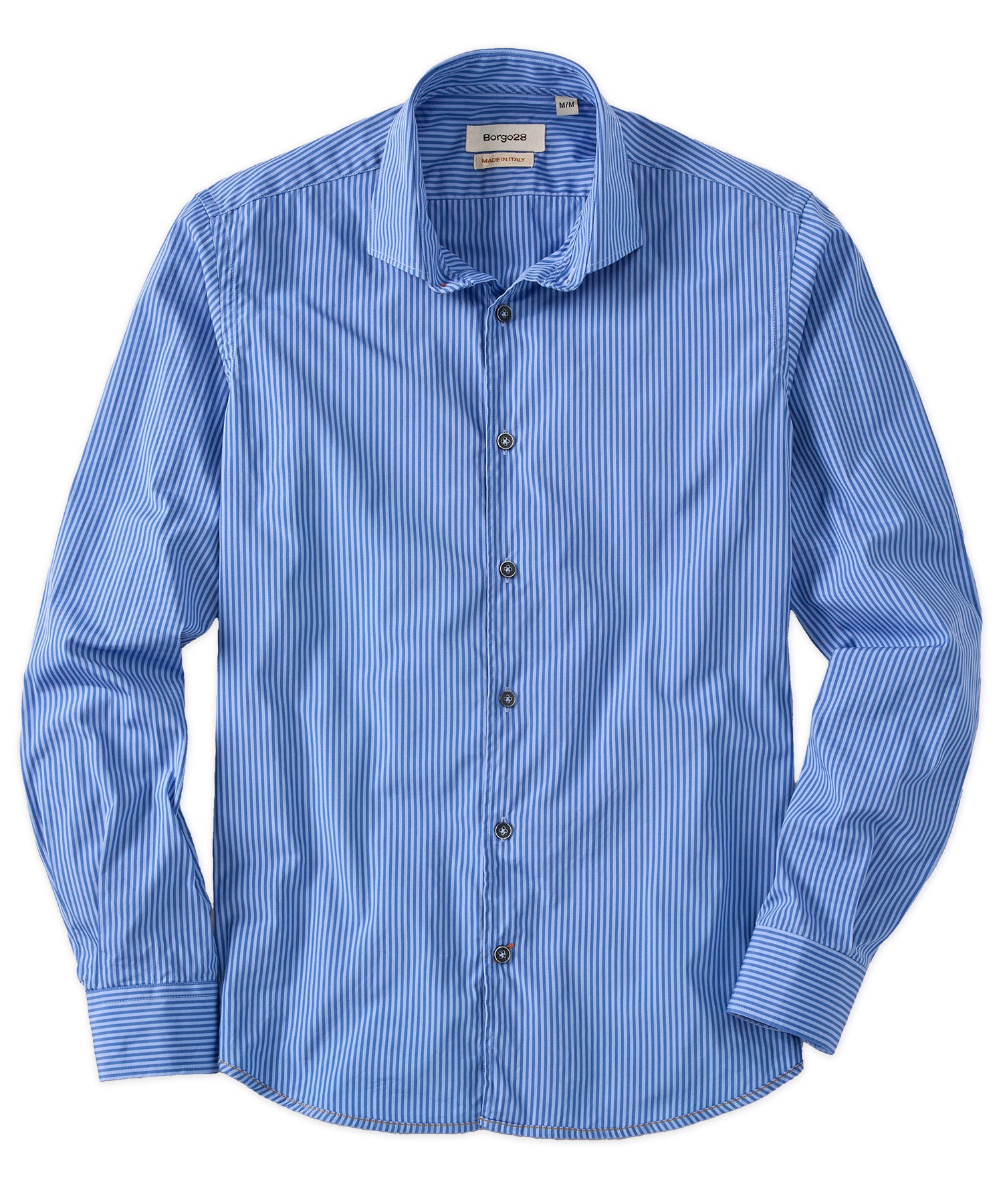 The 120-count two-ply yarn creates a high-quality fabric that is both soft and strong, finished with a spread collar with removable stays and two-button barrel cuffs.