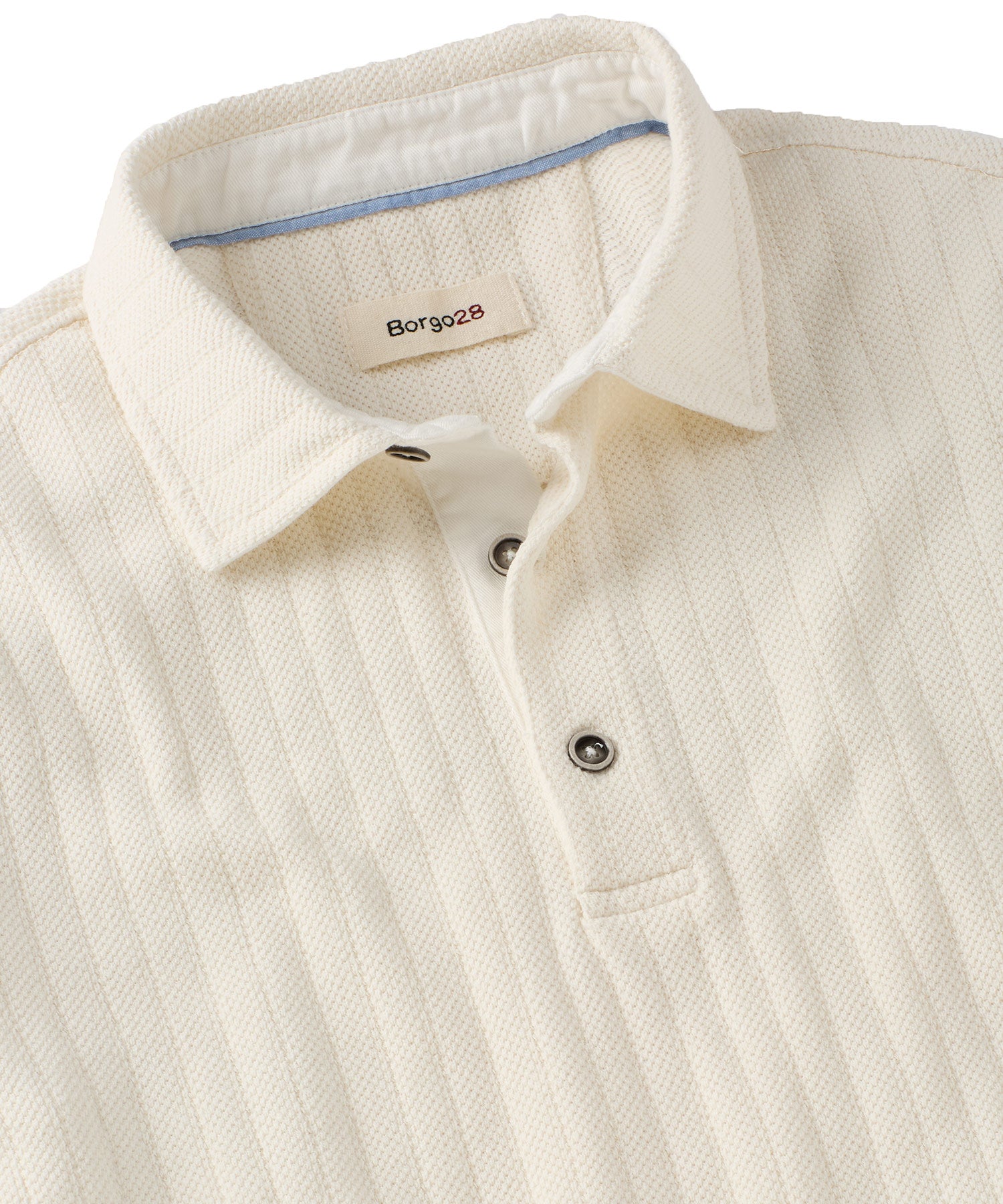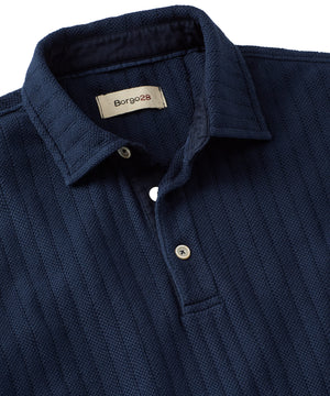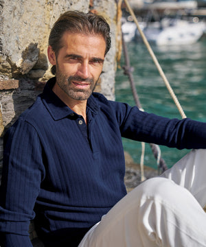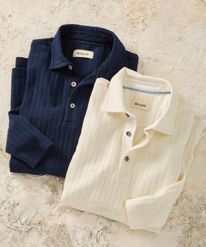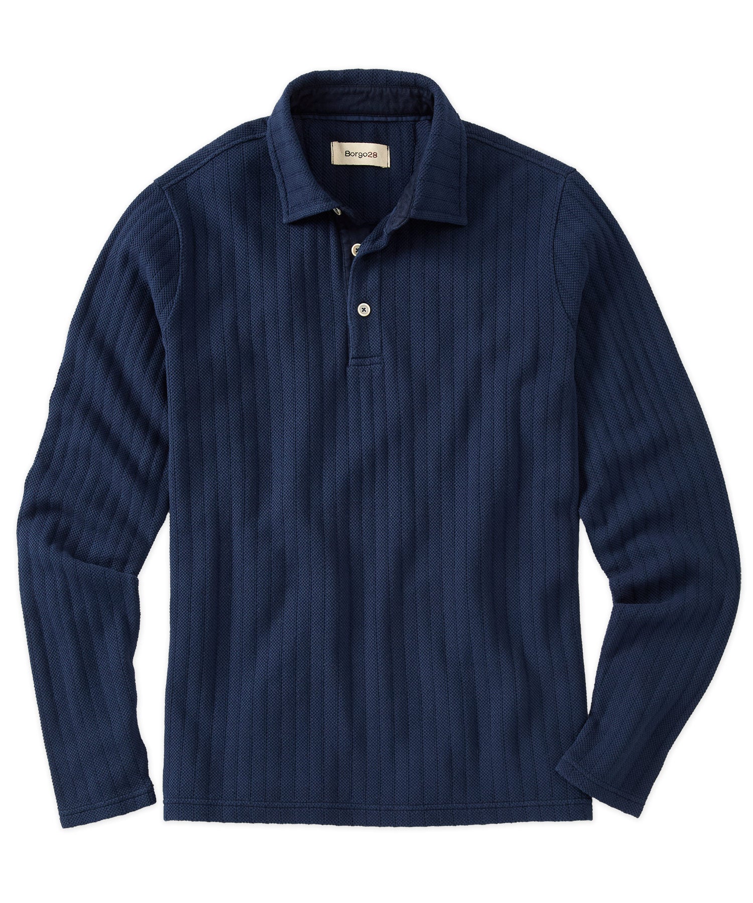 A modern essential, this long-sleeve ribbed polo combines refined texture with a clean, tailored fit. Designed for effortless versatility, it delivers polished comfort from workday to weekend.