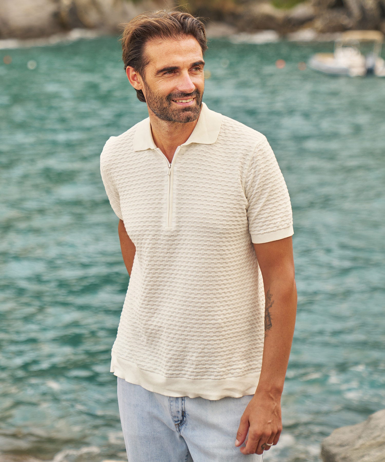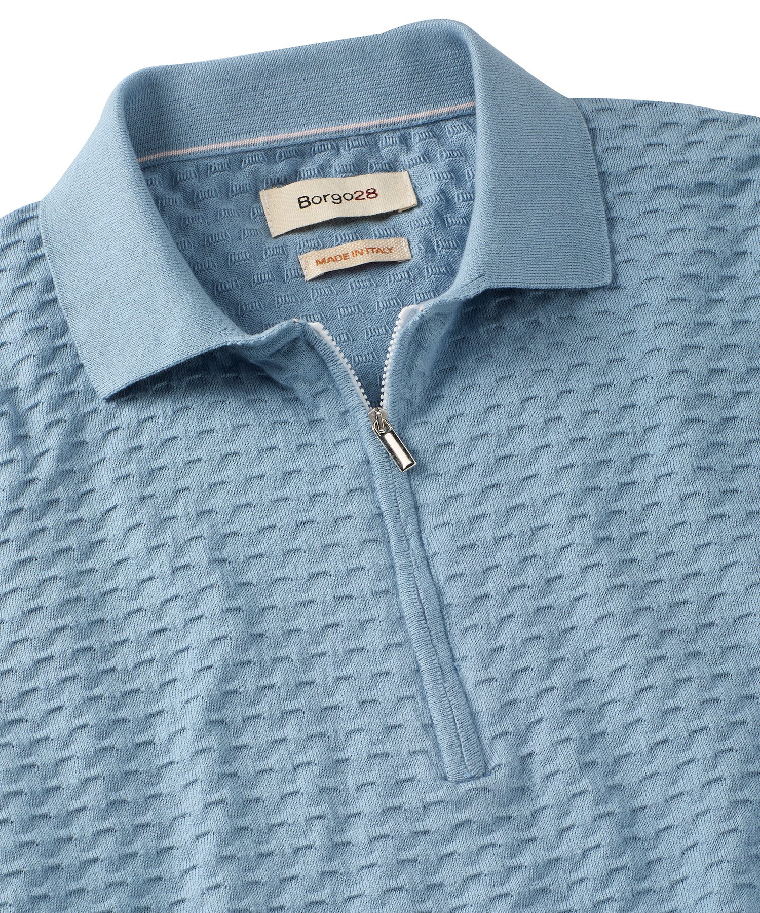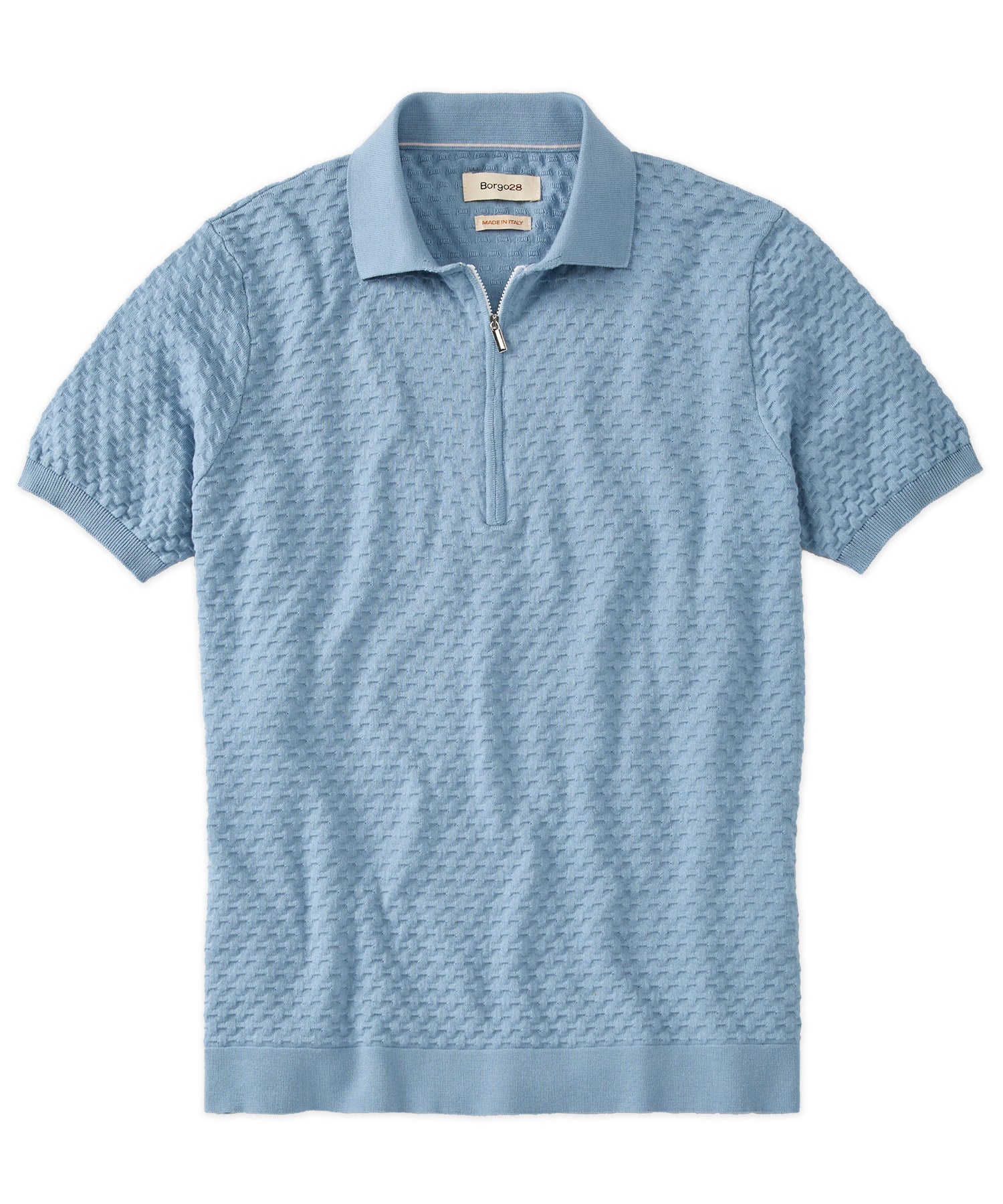 Crafted in Italy, this updated polo instantly elevates your spring and summer shirting options. The beautifully unique bubble detailing on the body is finished with a knit collar and ribbed knit openings.