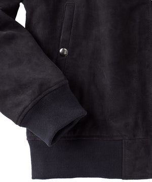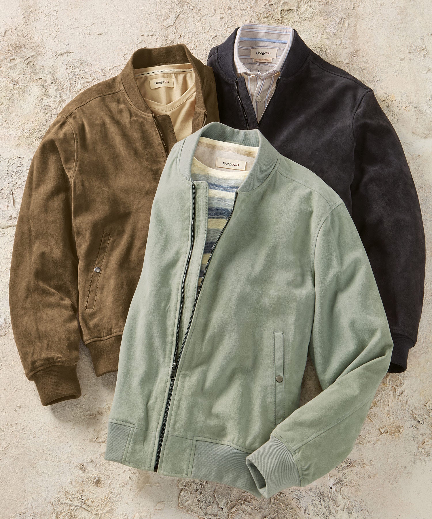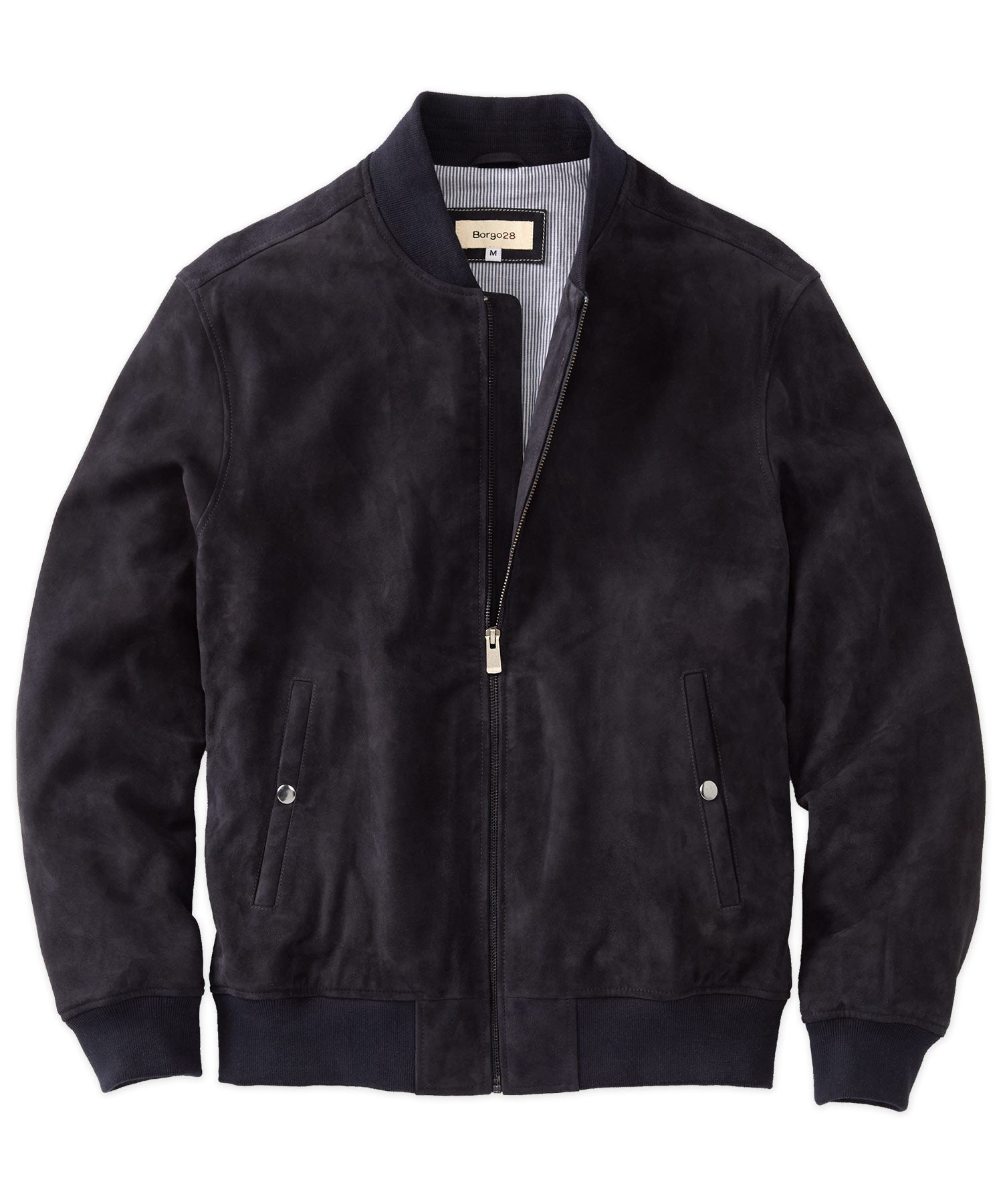 With its luxe feel and retro style, our suede bomber is an ideal outer layer. Zip-front style has ribbed knit collar, cuffs and waist. Front pockets with snap closures.