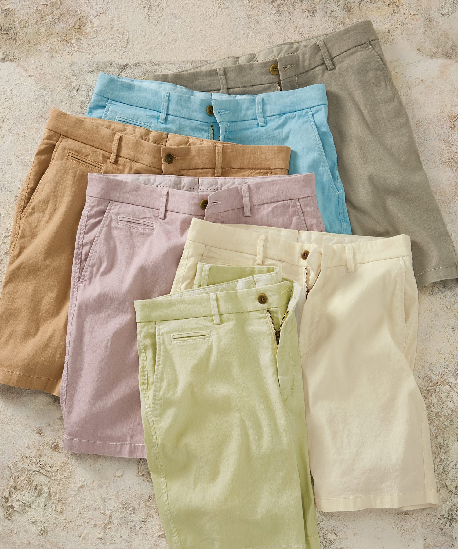 A lightweight linen-cotton blend with a hint of stretch. Flat front with button-through back pockets. 67% linen, 30% cotton, 3% elastane. Machine wash. 9" inseam.