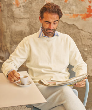 Garment-dyed cotton gives this updated crewneck sweatshirt extra softness, while the reverse jacquard pattern elevates its style. Made in Portugal from high-quality cotton.