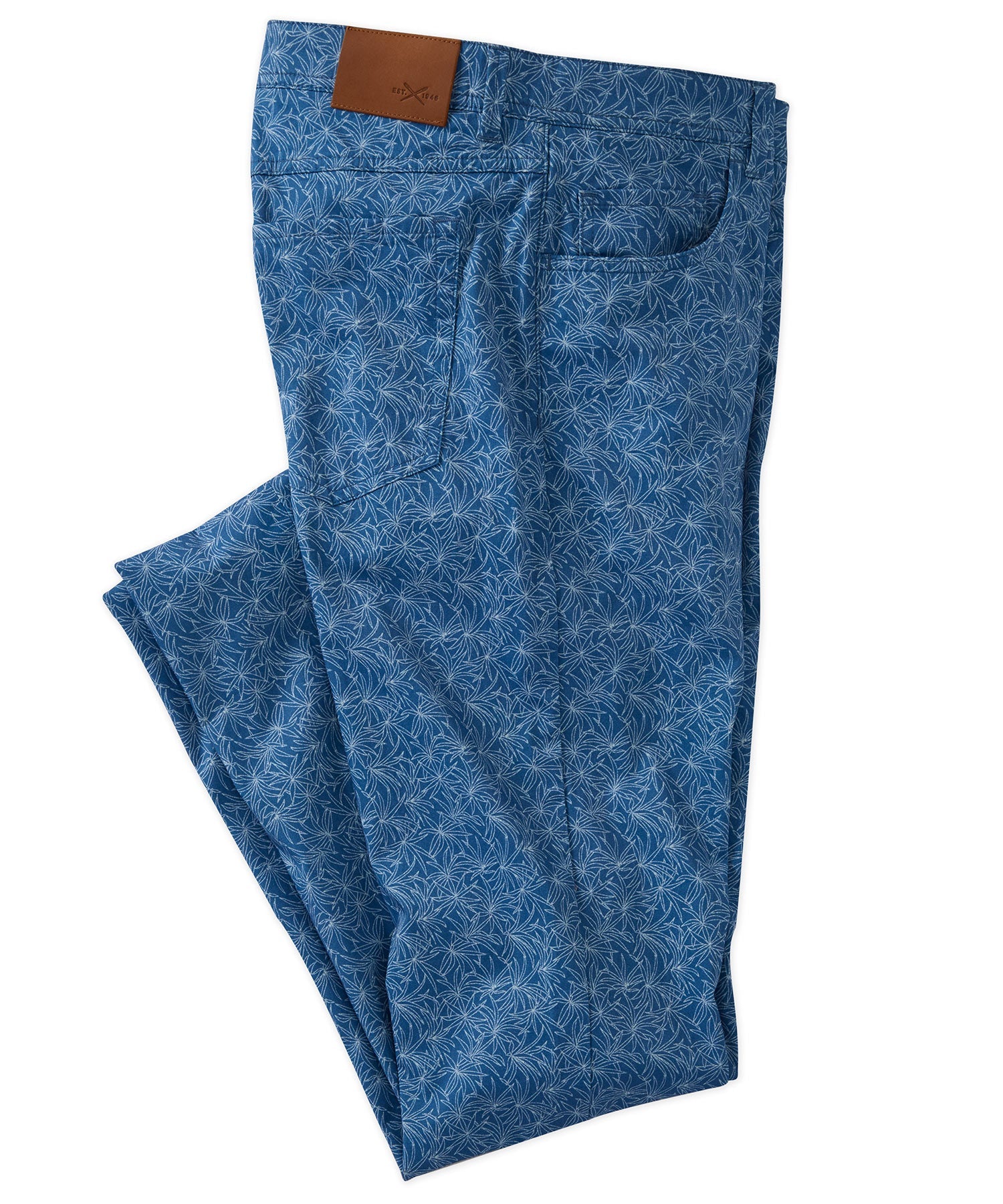 Yes, you can keep the vacation spirit with you all season. Five pocket styling with a hint of stretch. 95% cotton, 5% elastane. Machine wash.