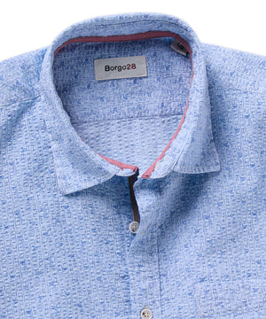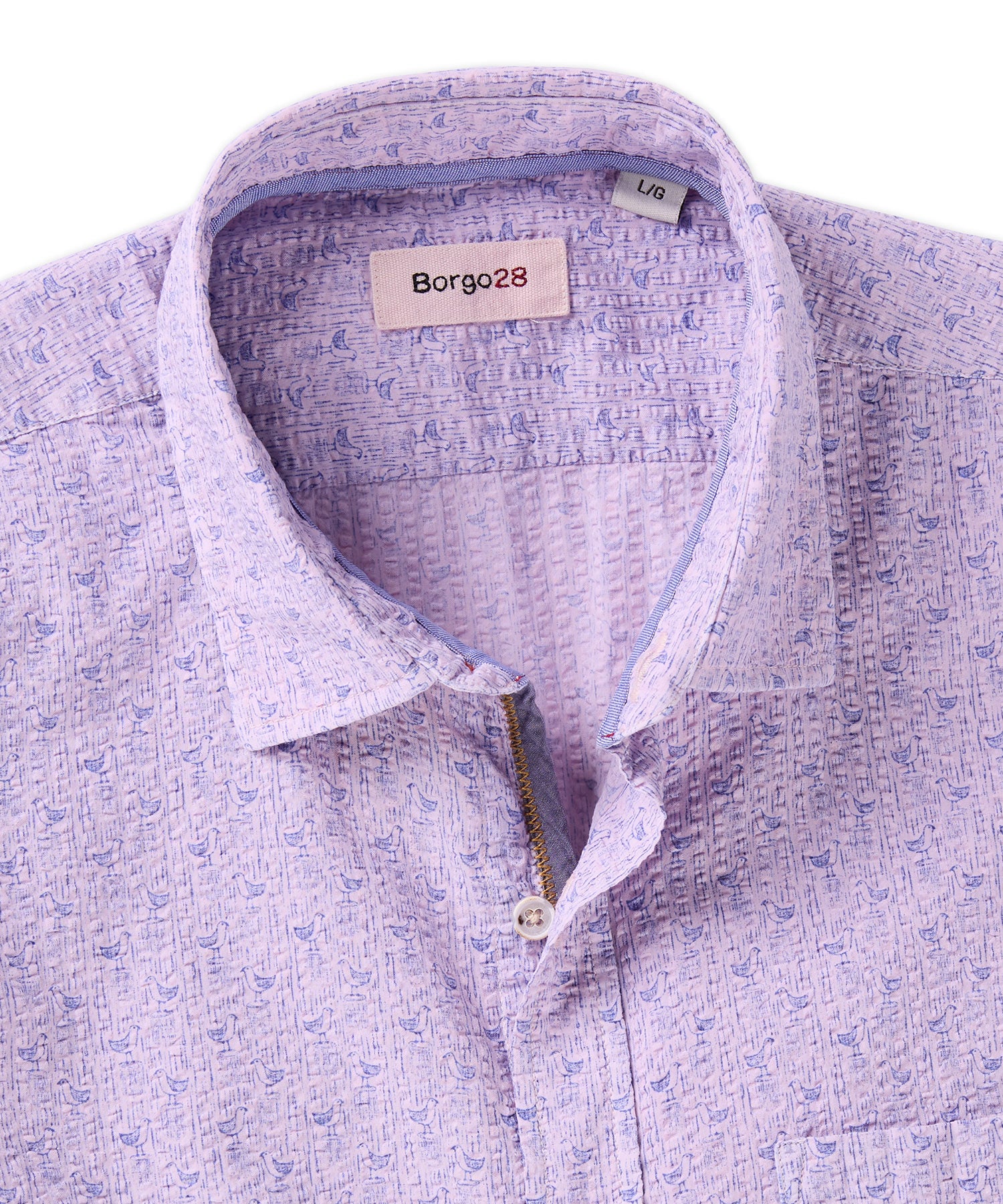 If the saying holds true about early birds, this fresh pattern is proof that they also get top billing with spring styles. Button-front design has contrast stitching at the hem and inner placket. Spread collar. Single chest pocket.